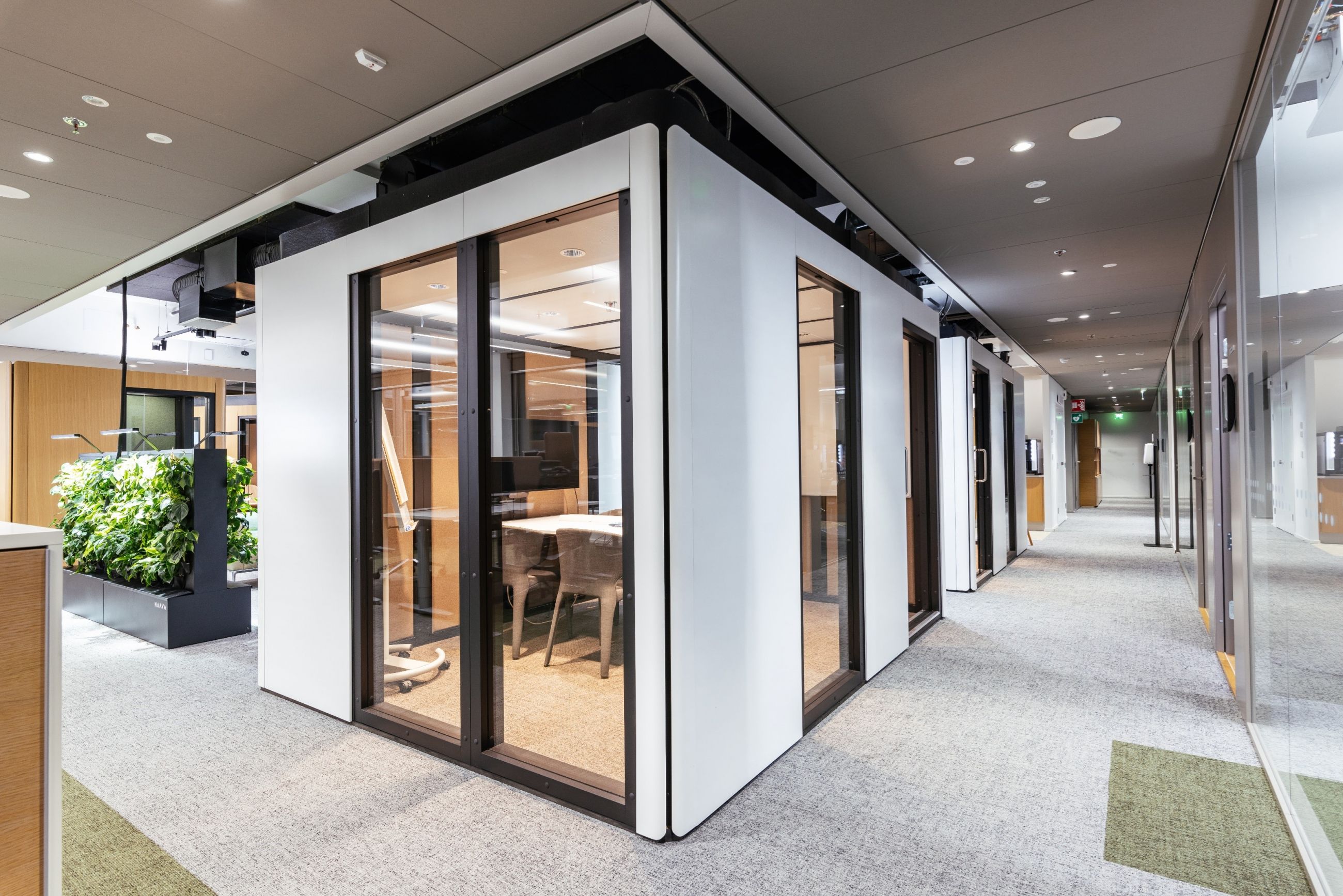 Octacell toimitti Haltonin pääkonttorille videoneuvottelu- ja puhelintiloja, työhuoneita sekä viiden hengen neuvottelutiloja.