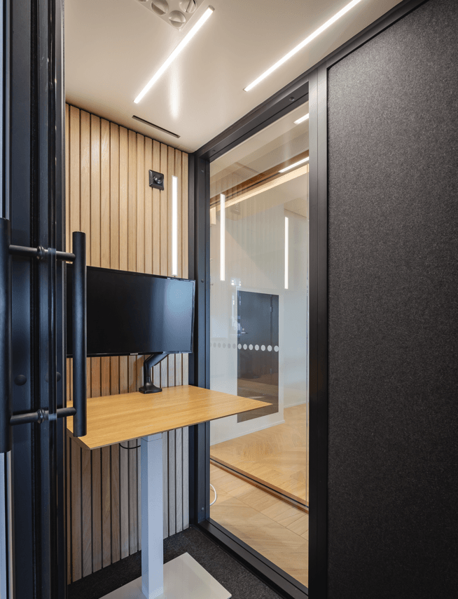 Våra kunder har till stor del återvänt till kontorsarbete, men distansmöten har blivit en permanent del av vår vardag. Belysningen för videokonferenser har diskuterats med många av våra kunder, och vi är glada att meddela att det är möjligt att utrusta Octacell-utrymmen med främre belysning som förbättrar videokvaliteten.