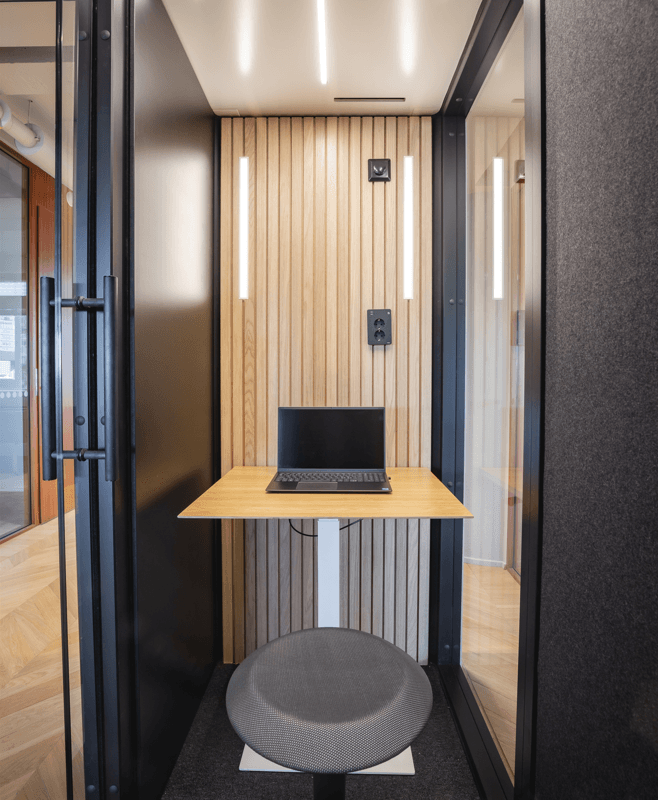 De mest efterfrågade modellerna av Octacell-utrymmen är videokonferensrum, där distansmöten kan hållas i lugn och ro.