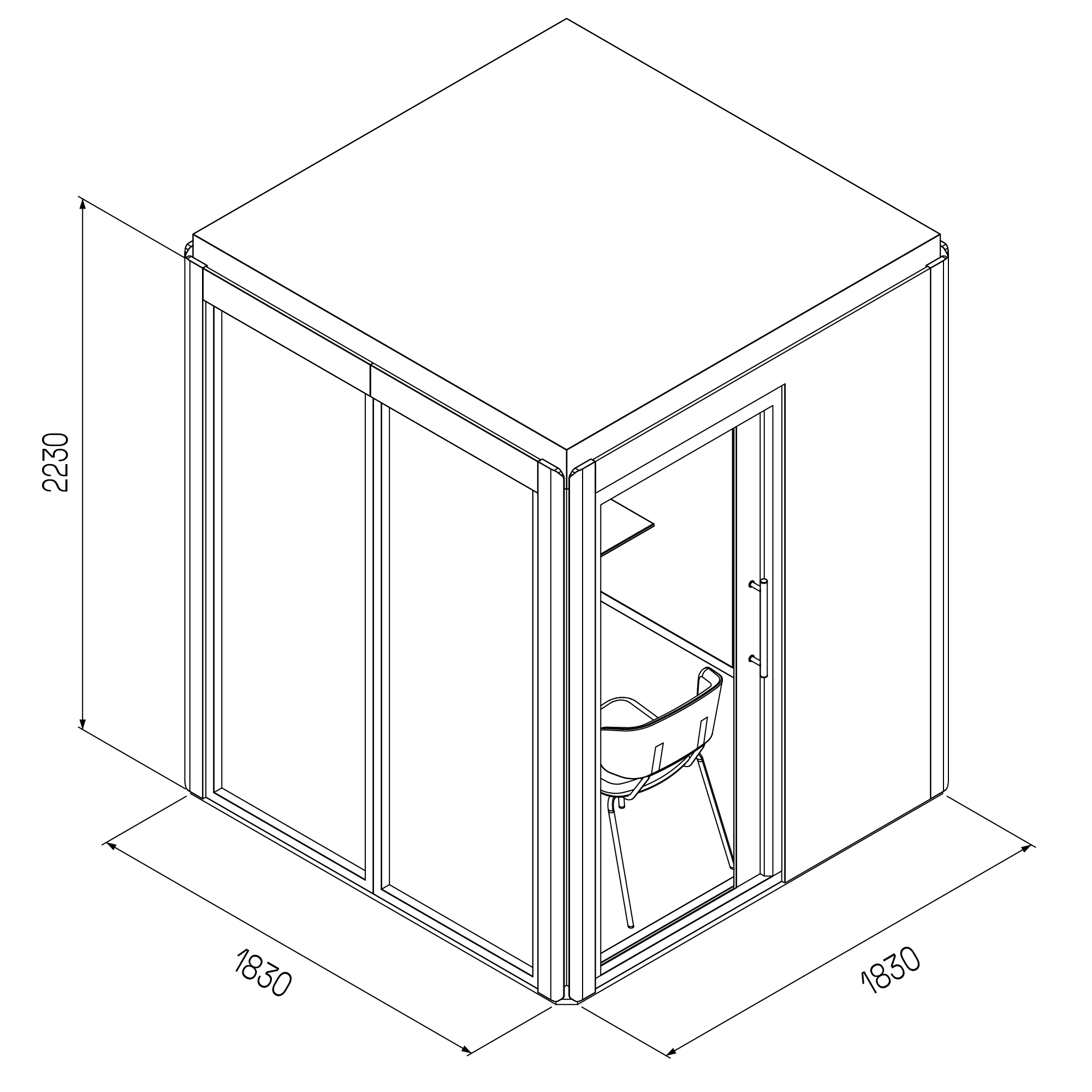 - Ljudisolerat mötesrum för två personer