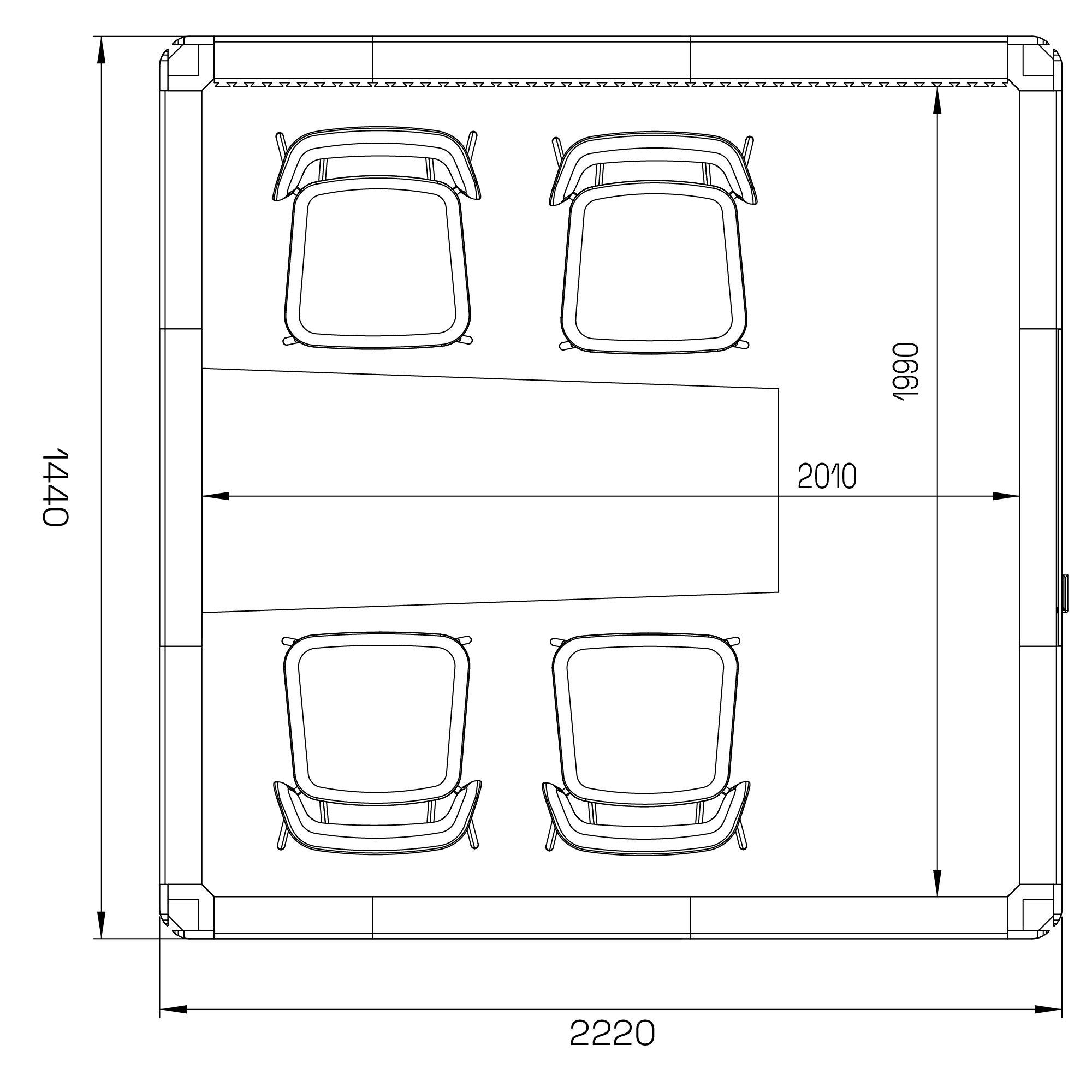 - Kan utrustas med mötesbord, stolar och AV-utrustning