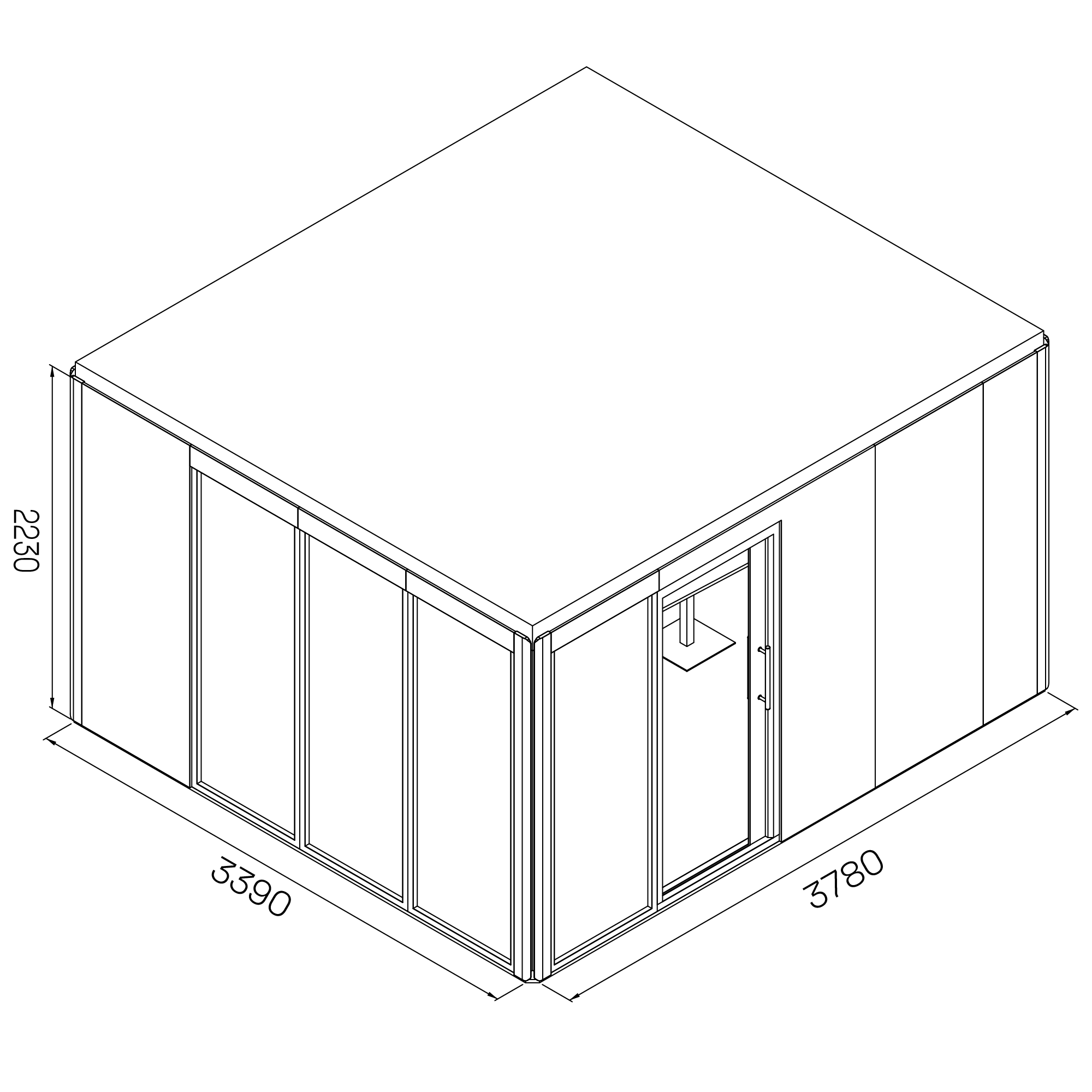 - Fristående konstruktion med eget golv, tak och väggar; ingen infästning i omgivande byggnadsstrukturer