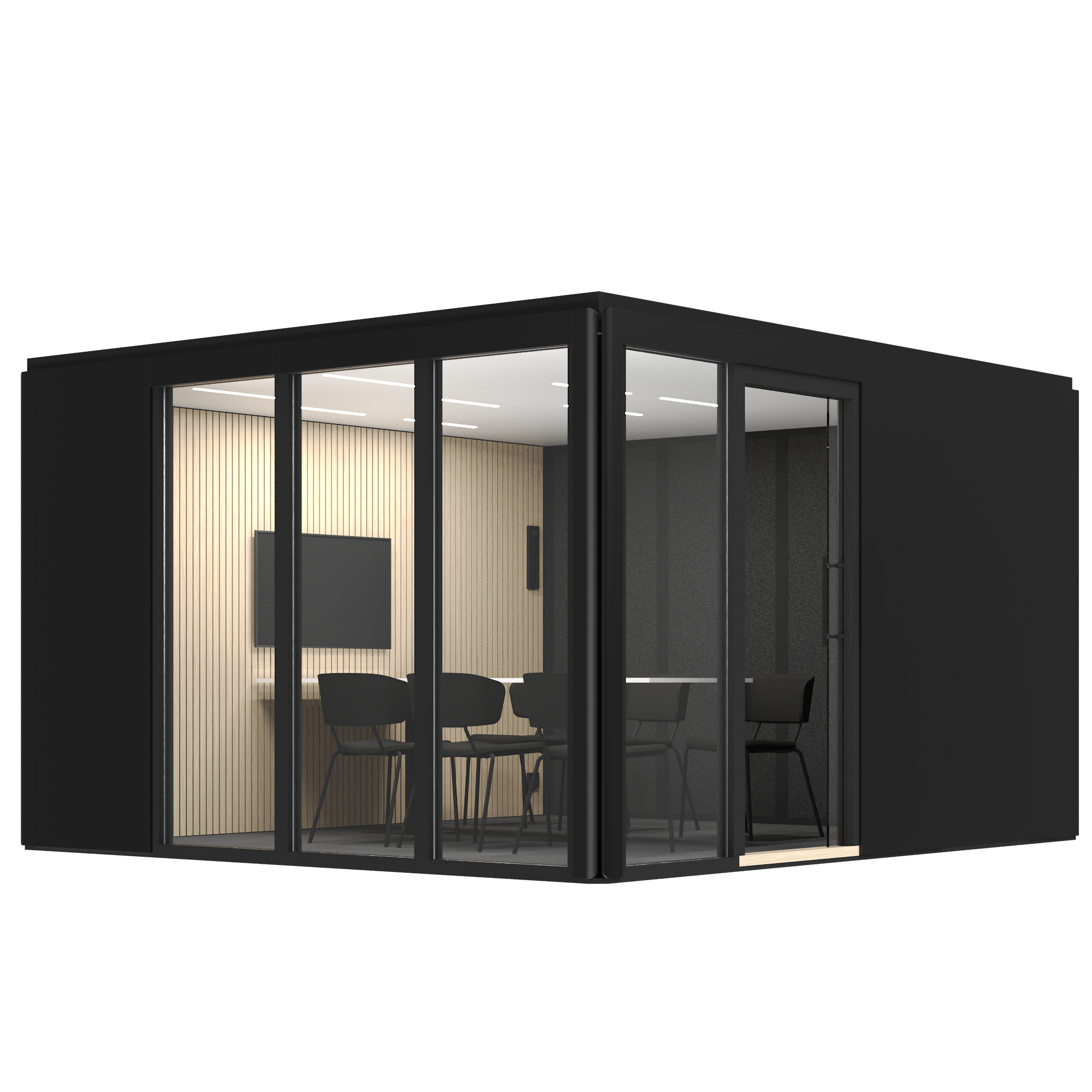 Priserna för mötesrum med standardutrustning visas på vår webbplats. Utöver produktpriset tillkommer montering och leverans. Montering och leverans från 12 000 kr (exkl. moms).