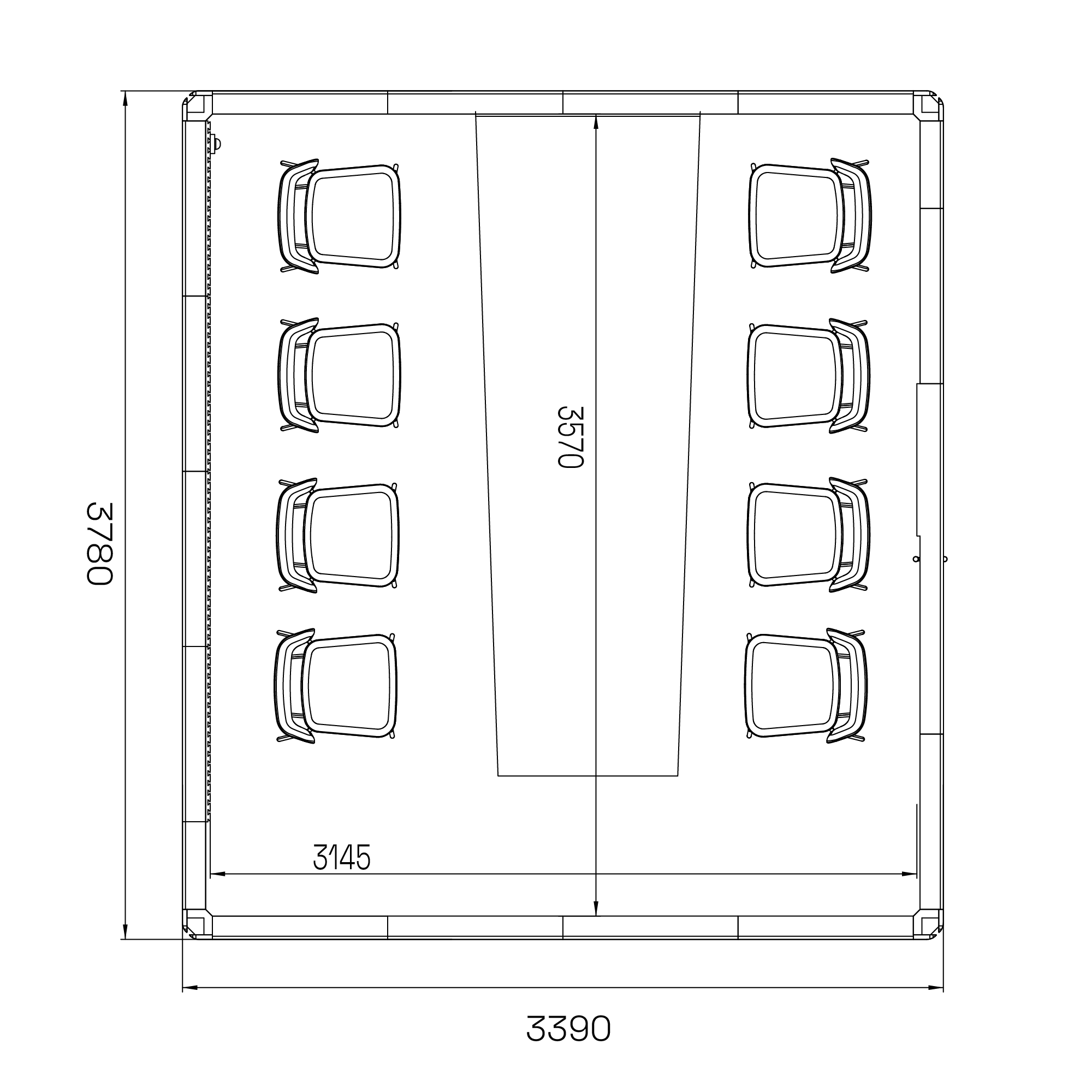 - Kan utrustas med mötesbord, stolar och AV-utrustning