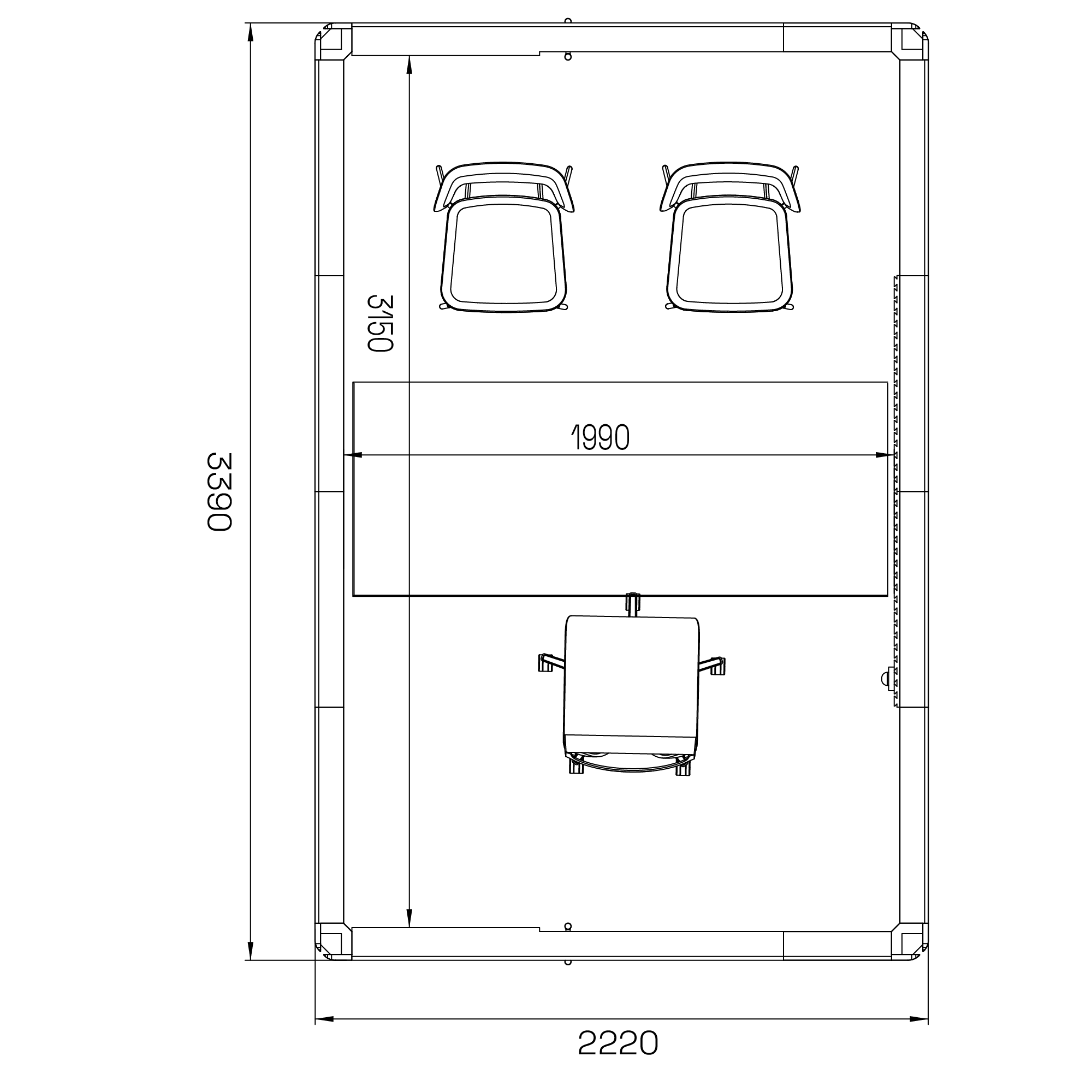 Kundtjänstrummen levereras som standard utan möbler. Det går att använda era egna möbler i alla Octacell-rum, men det går också att köpa möbler från oss.