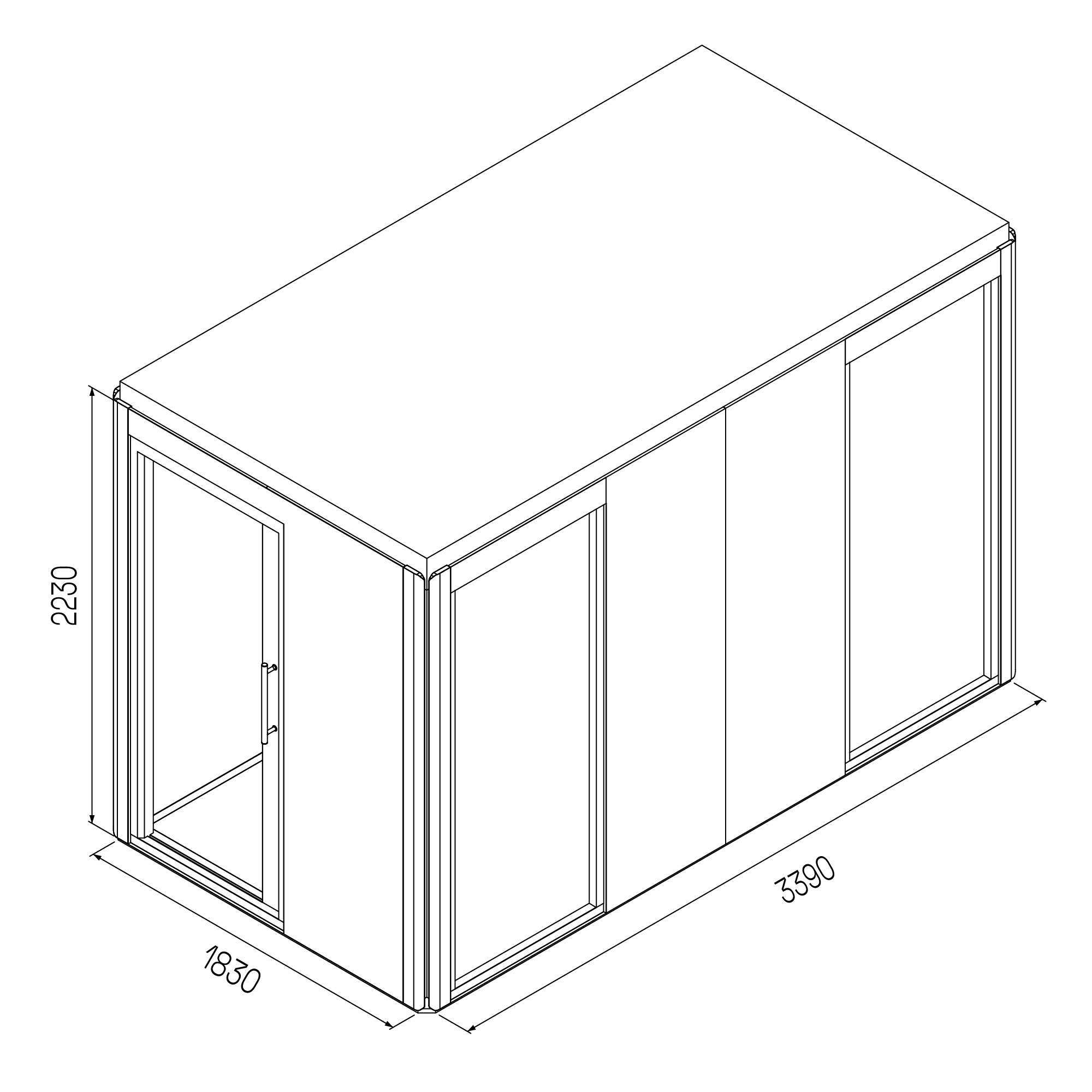 - Fristående konstruktion med eget golv, tak och väggar; ingen infästning i omgivande byggnadsstrukturer