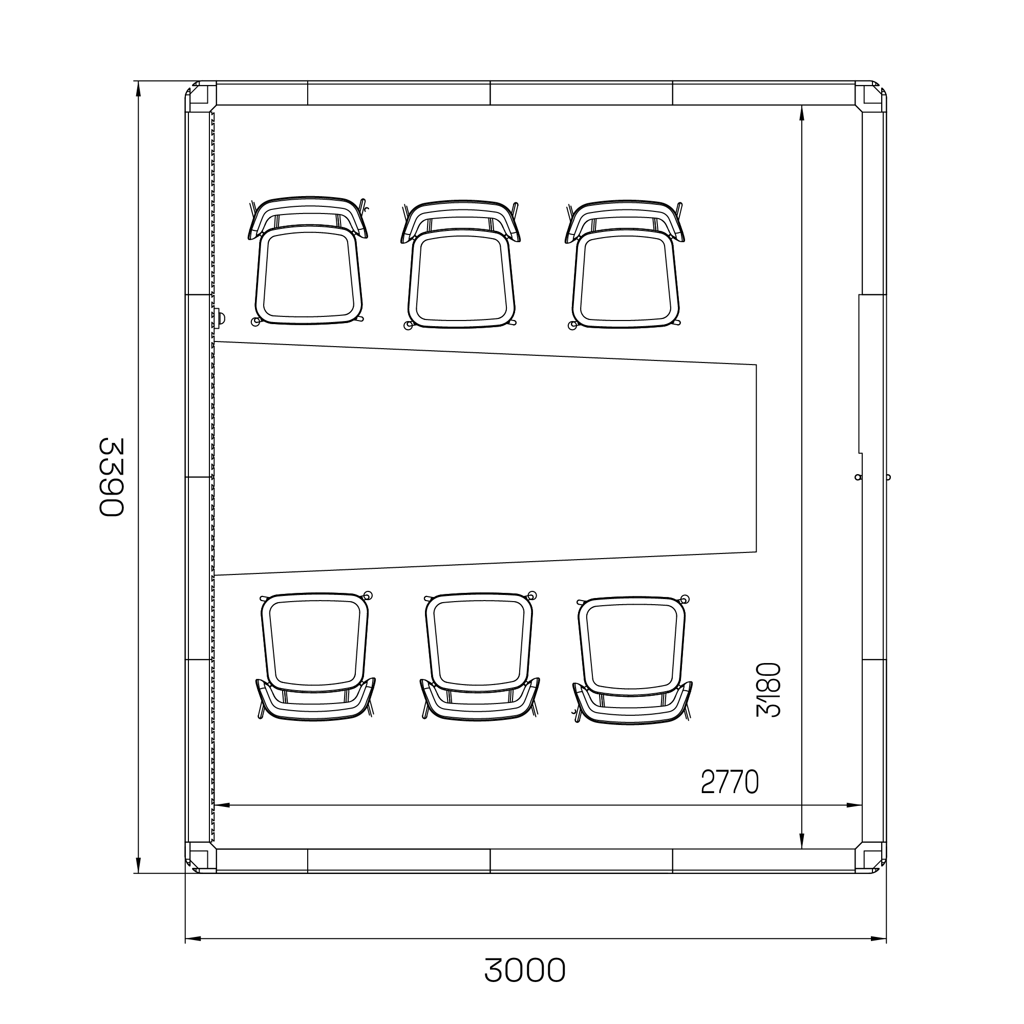 - Kan utrustas med mötesbord, stolar och AV-utrustning