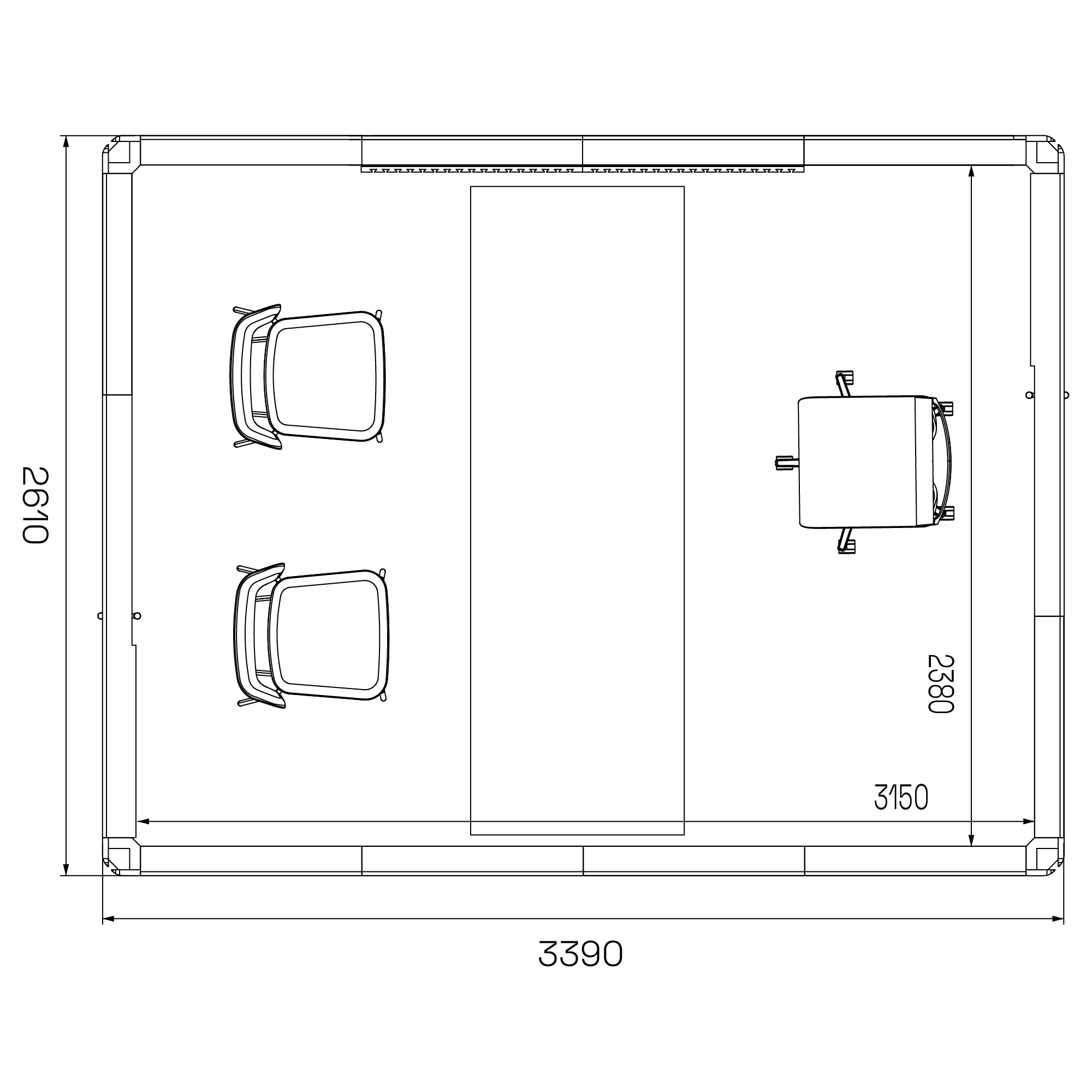 - Kan utrustas med kundtjänstbord, kontors- och konferensstolar samt AV-utrustning