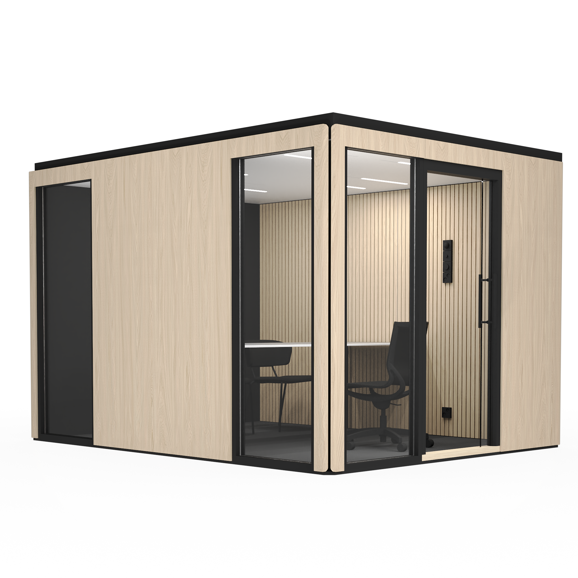 Skalbarhet innebär att rummen kan anpassas både före och efter montering. Inför montering planeras placeringen av dörrar och glasväggar så att rummet passar kontorsmiljön.