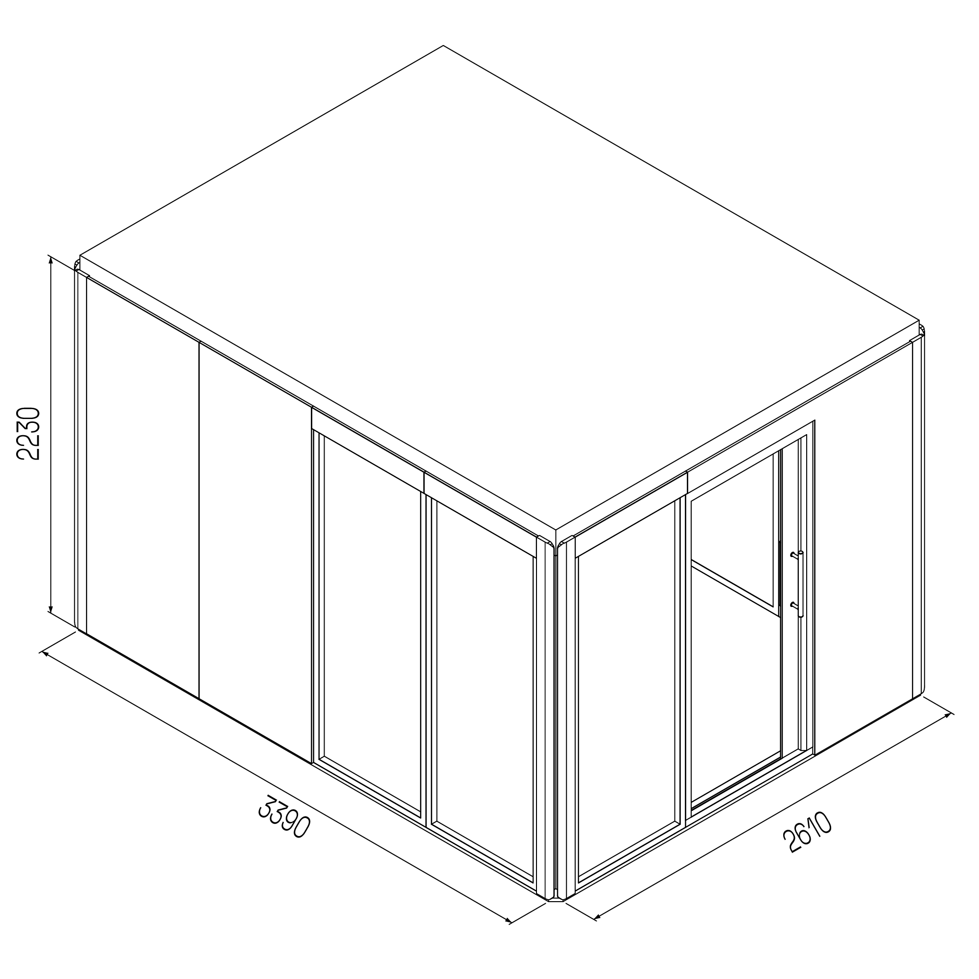 - Fristående konstruktion med eget golv, tak och väggar; ingen infästning i omgivande byggnadsstrukturer