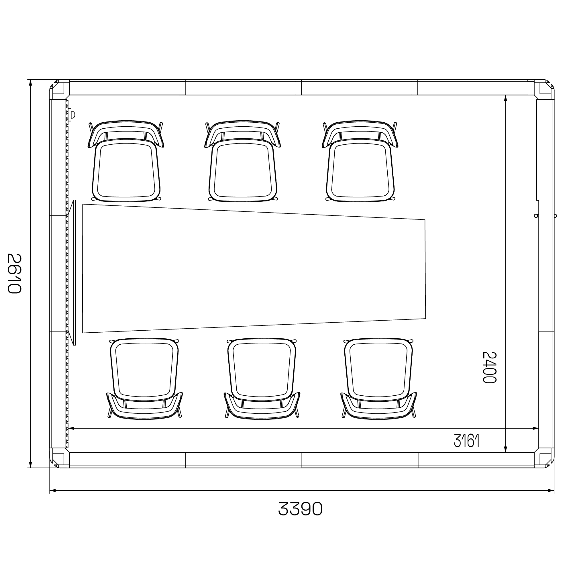 - Kan utrustas med mötesbord, stolar och AV-utrustning