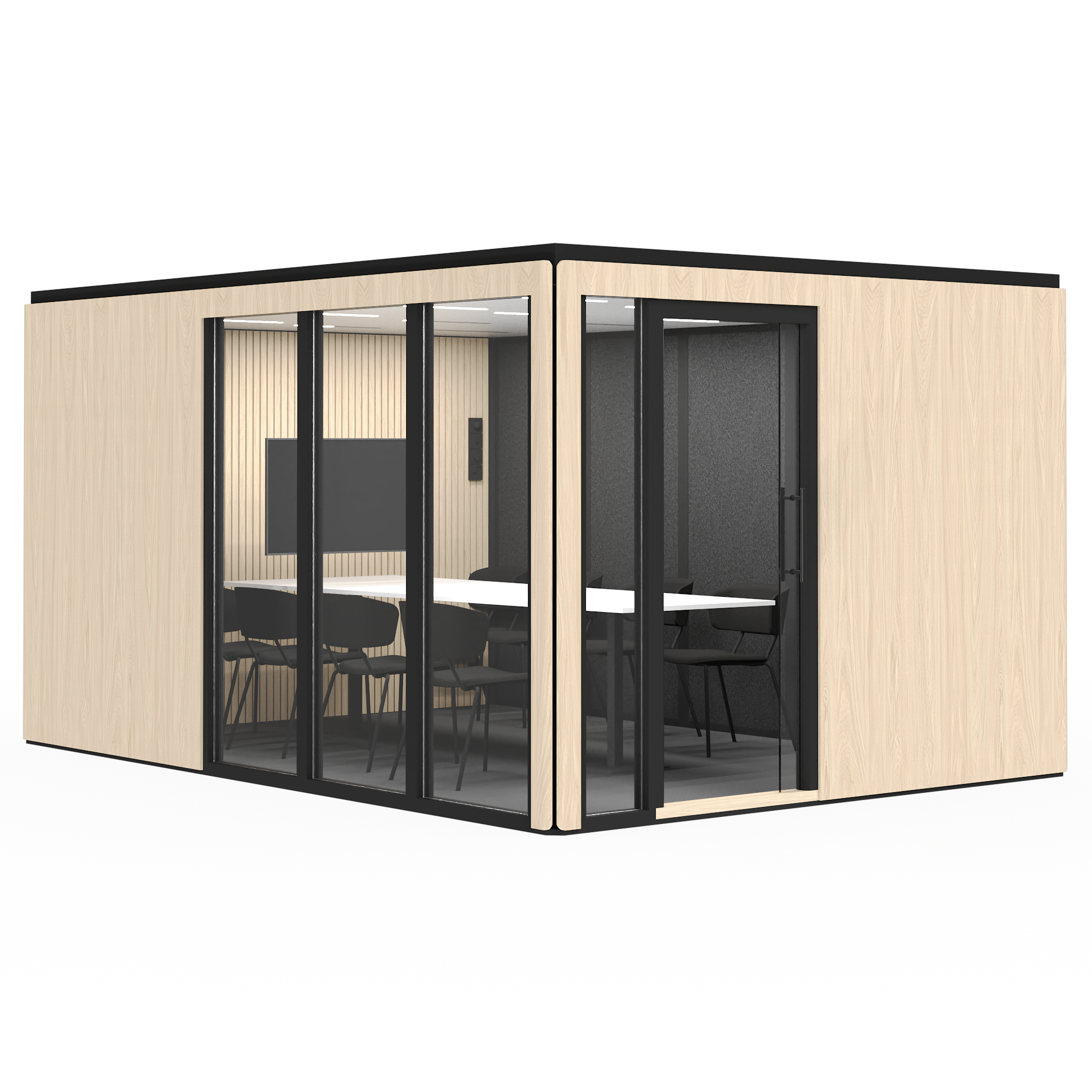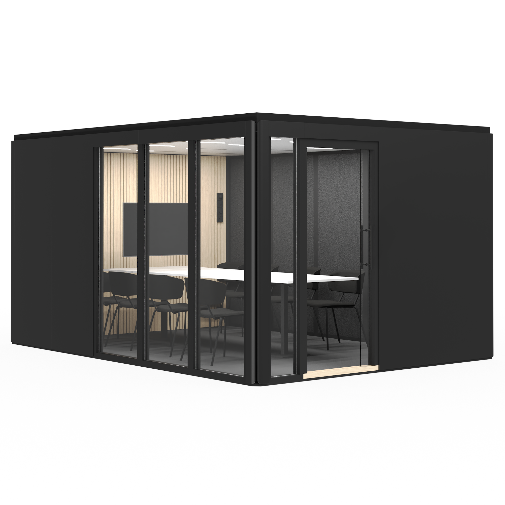 Priserna för mötesrum med standardutrustning visas på vår webbplats. Utöver produktpriset tillkommer montering och leverans. Montering och leverans från 12 000 kr (exkl. moms).