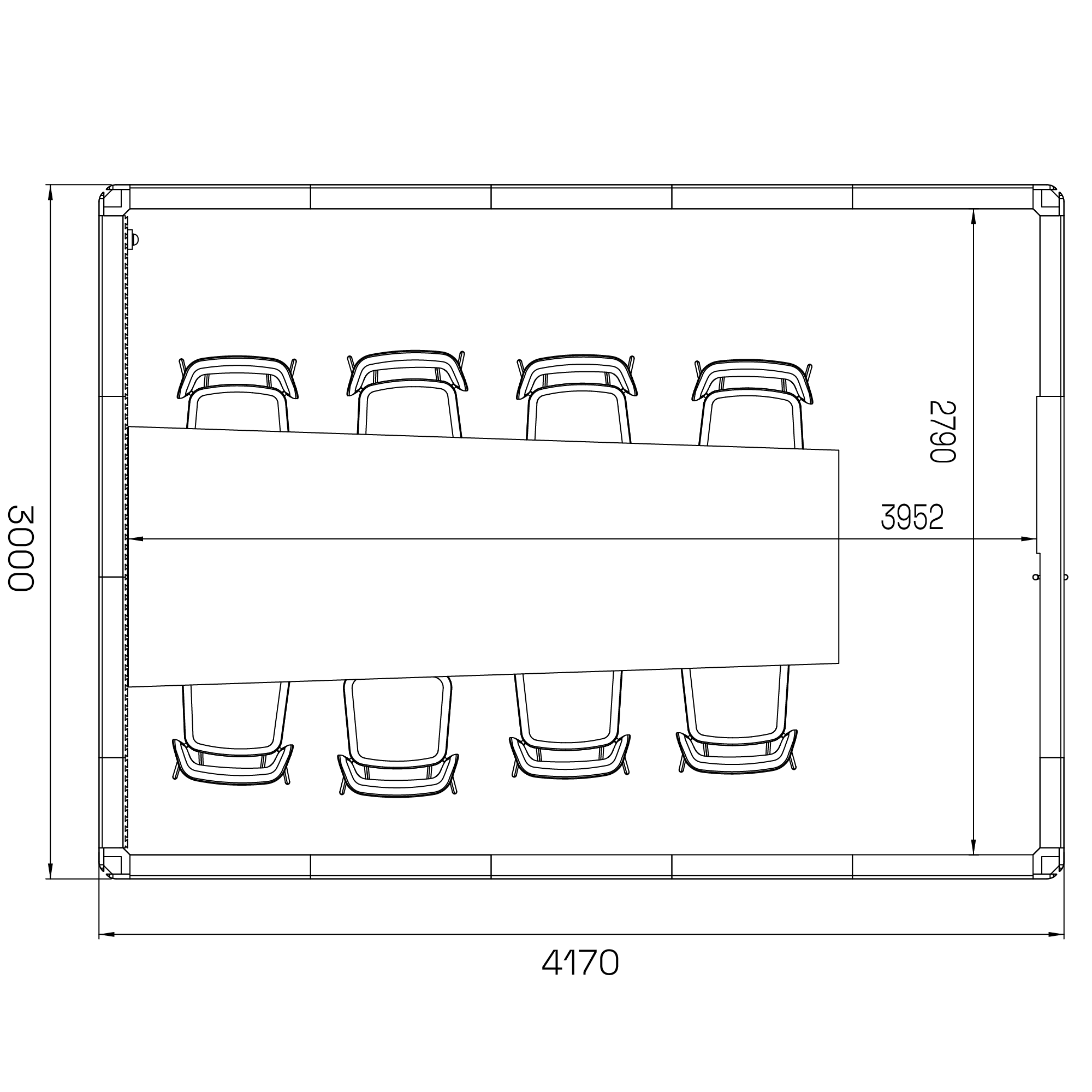 - Kan utrustas med mötesbord, stolar och AV-utrustning